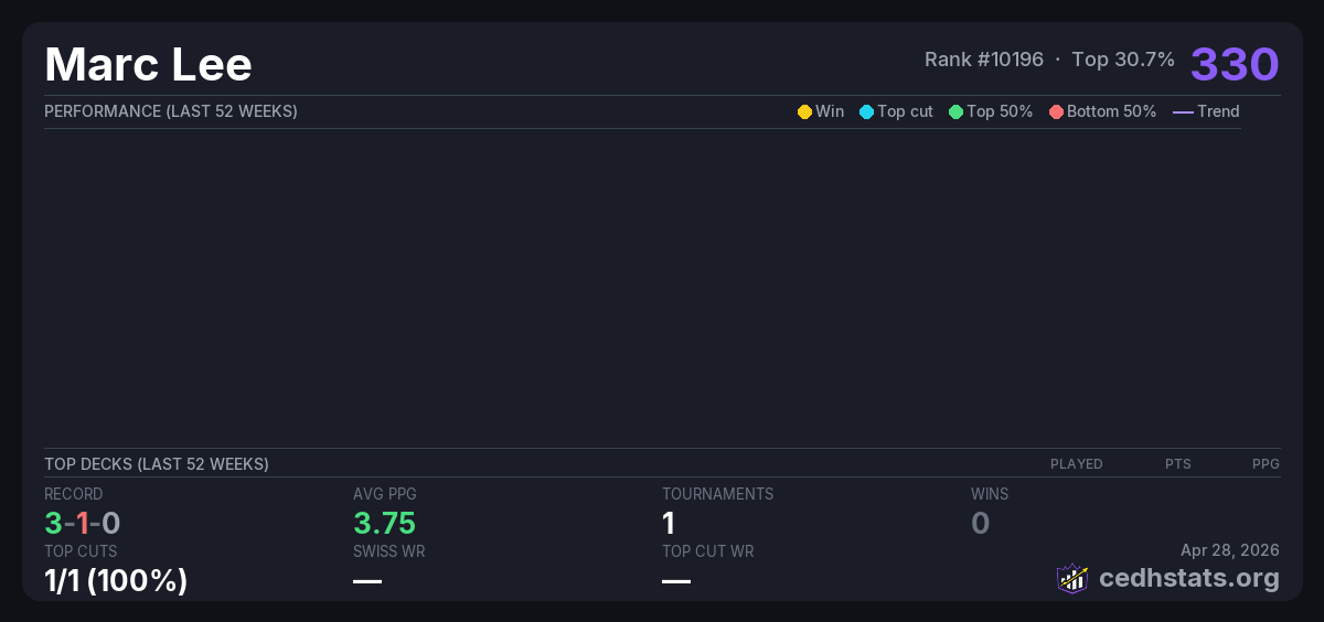 | Store Champ Oct 04, 2025 | Invalid pairing | 2/20 | 3-1-0 | 330 |