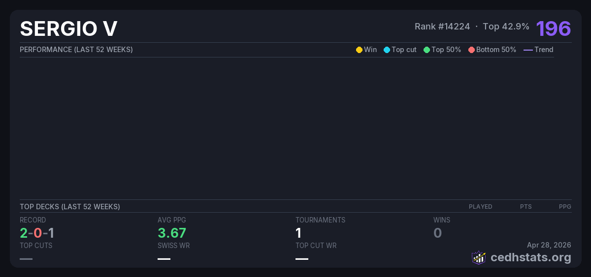 | Tournament | Deck | Result | Record | PPG | Points ? |