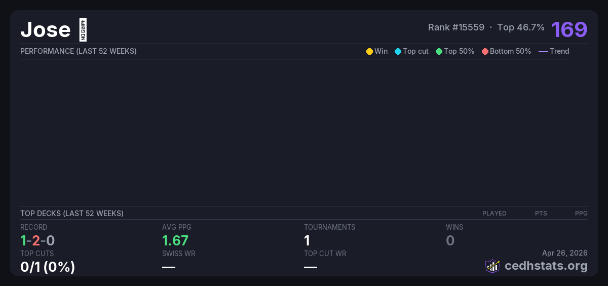 | Tournament | Deck | Result | Record | PPG | Points ? |