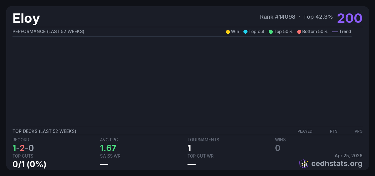 | Tournament | Deck | Result | Record | PPG | Points ? |