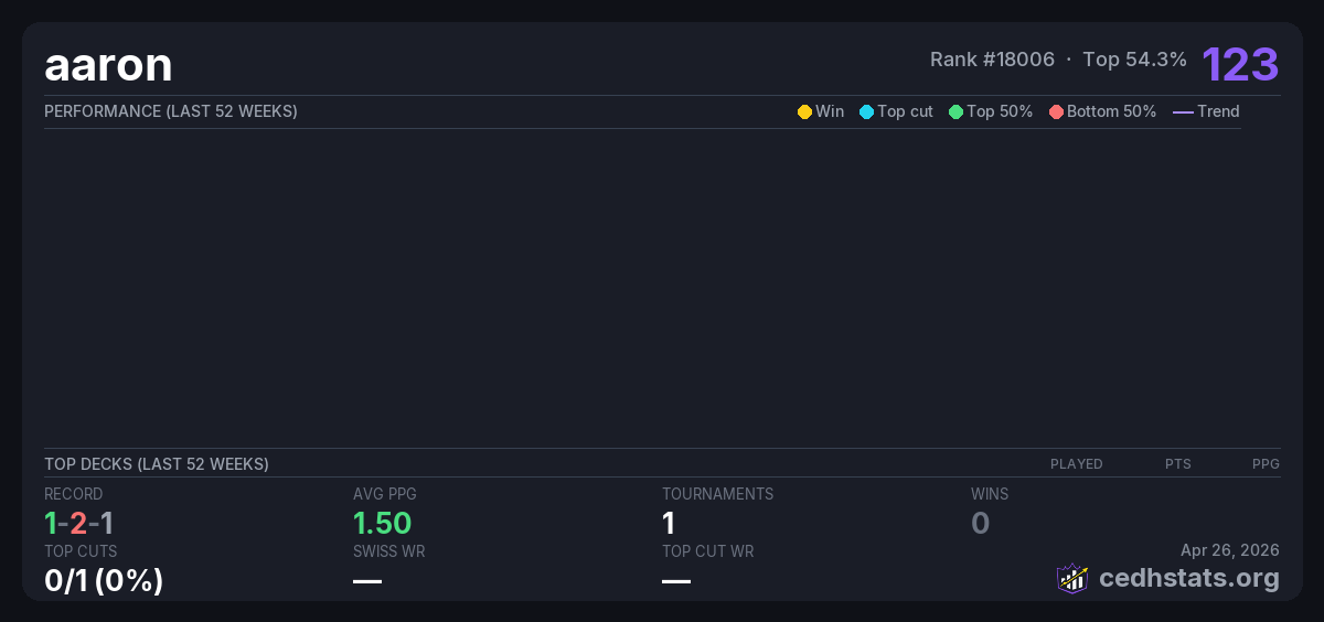 | Tournament | Deck | Result | Record | PPG | Points ? |