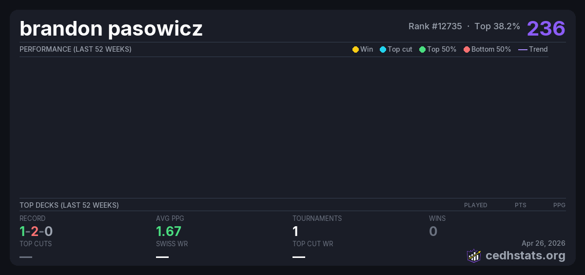 | Tournament | Deck | Result | Record | PPG | Points ? |
