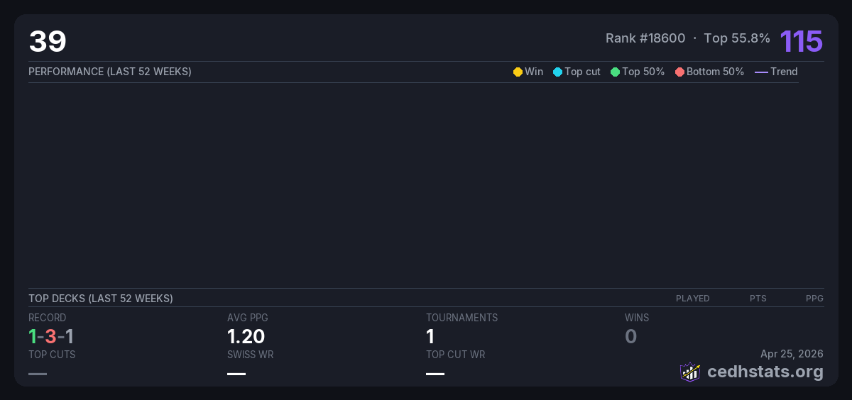 | Tournament | Deck | Result | Record | PPG | Points ? |