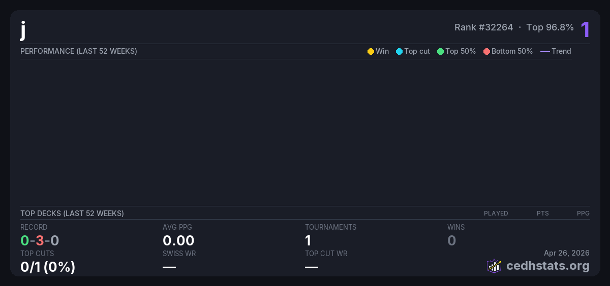 | testtt Nov 06, 2025 · 16 players | Invalid pairing | 16/16 | 0-3-0 | 0.00 | 1 |
