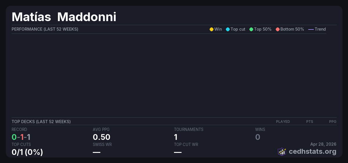 | Tournament | Deck | Result | Record | PPG | Points ? |