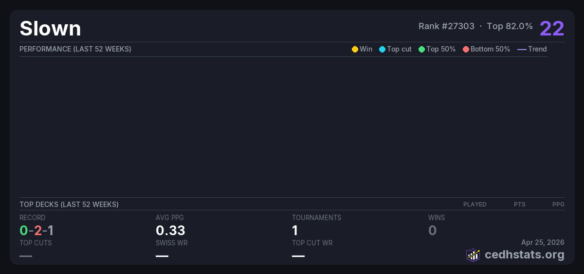 | Commander League 3 week 2 Feb 07, 2026 | 15/20 | 0-2-1 | 22 | |