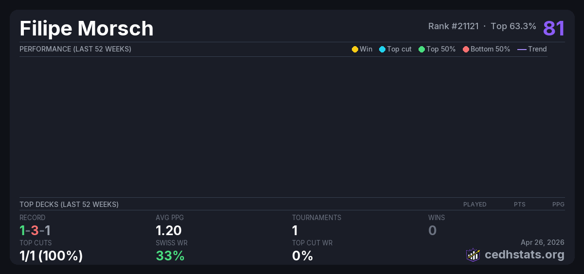 | Commander 500 - 2K - 25-04-2026 Apr 25, 2026 | — | 12/24 | 1-3-1 | 81 |