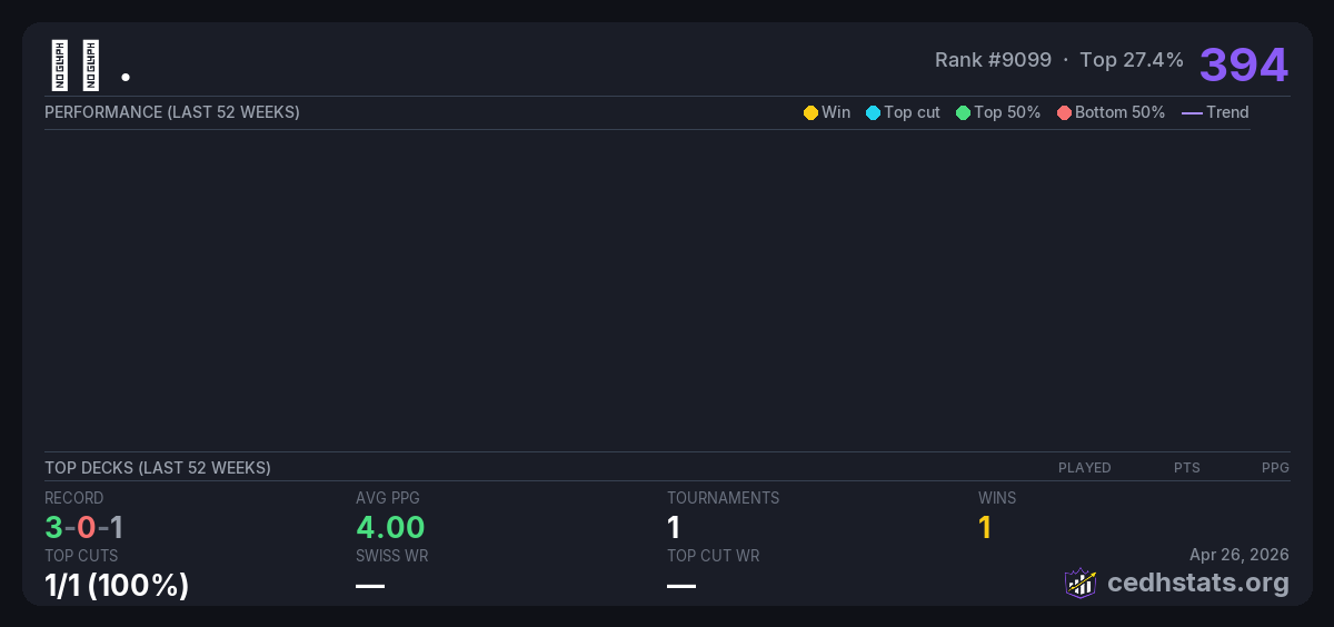 | Tournament | Deck | Result | Record | PPG | Points ? |
