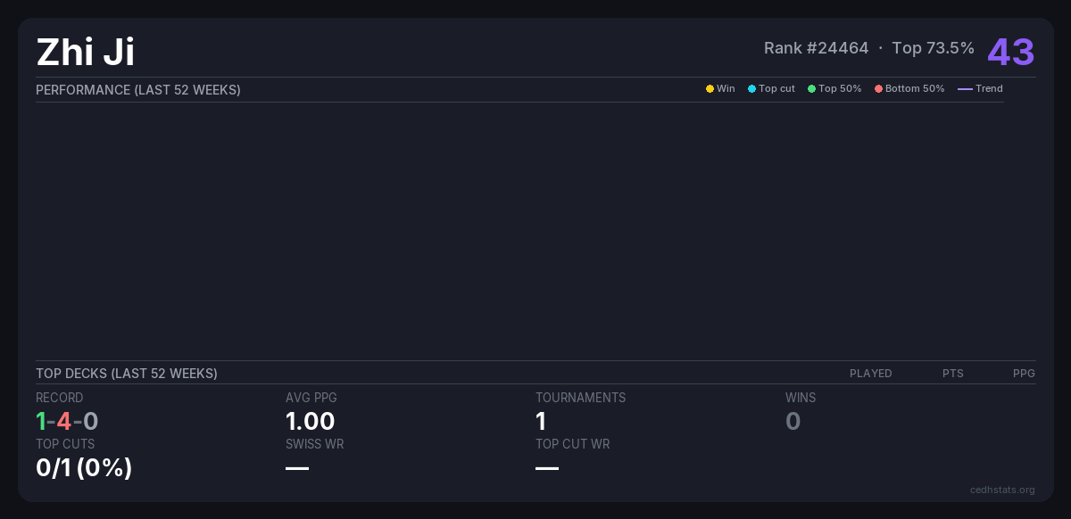 | 2025.10.25 广州CF cEDH Oct 25, 2025 · 80 players | Invalid pairing | 54/80 | 1-4-0 | 1.00 | 43 |
