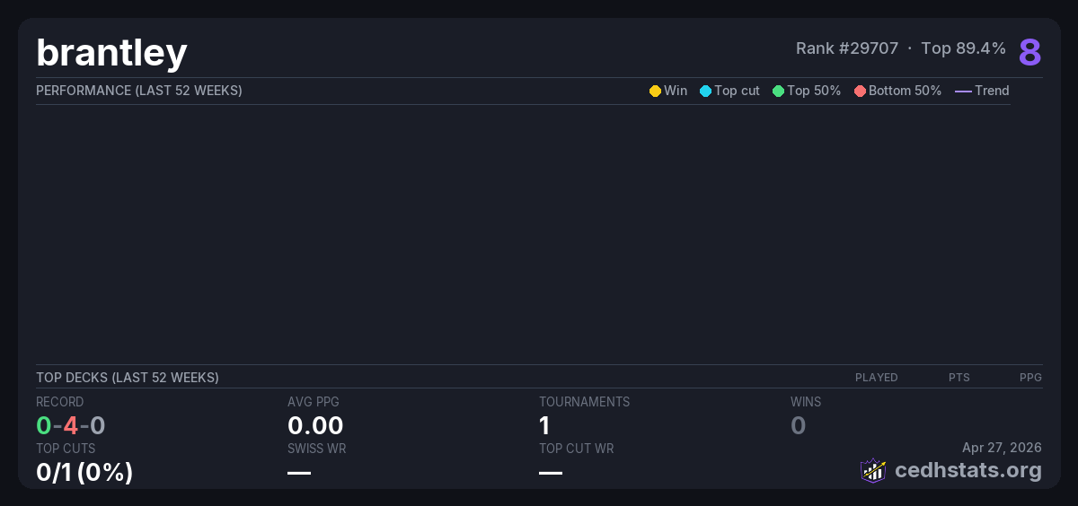 | Tournament | Deck | Result | Record | PPG | Points ? |