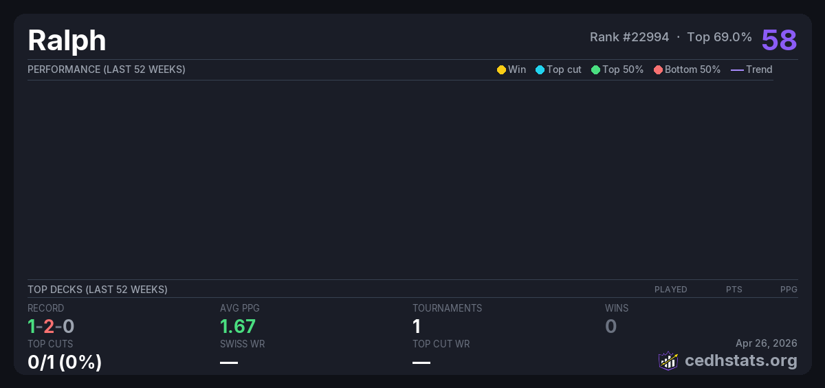 | Tournament | Deck | Result | Record | PPG | Points ? |