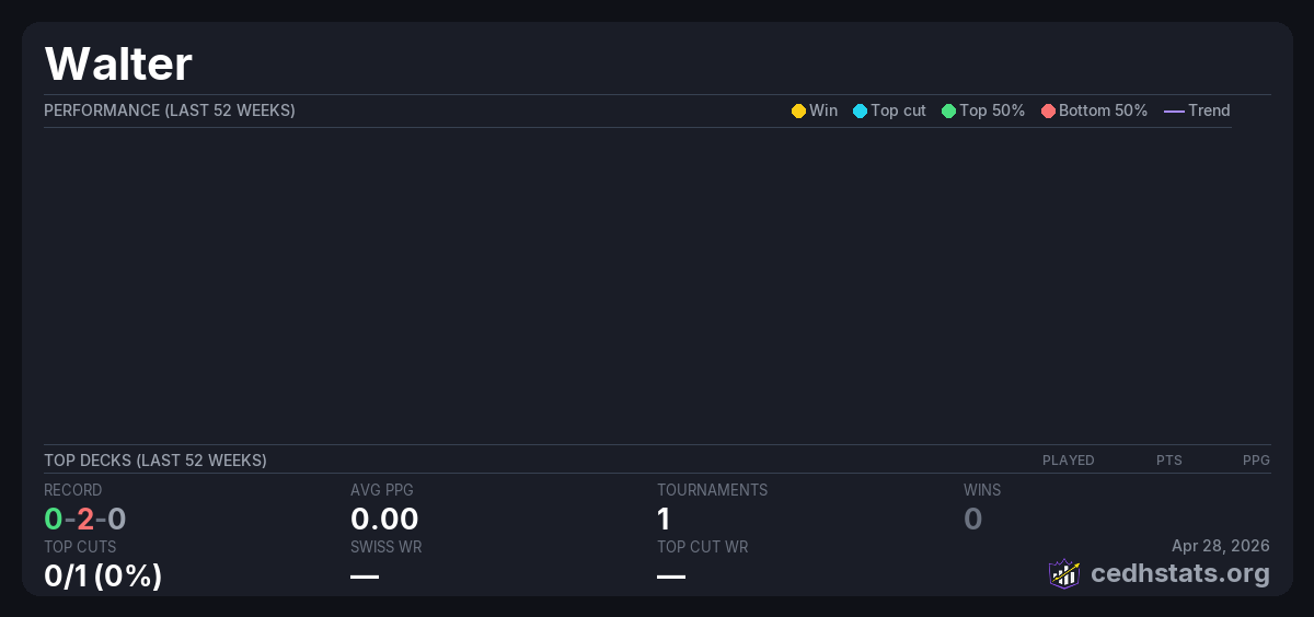 | Tournament | Deck | Result | Record | PPG | Points ? |
