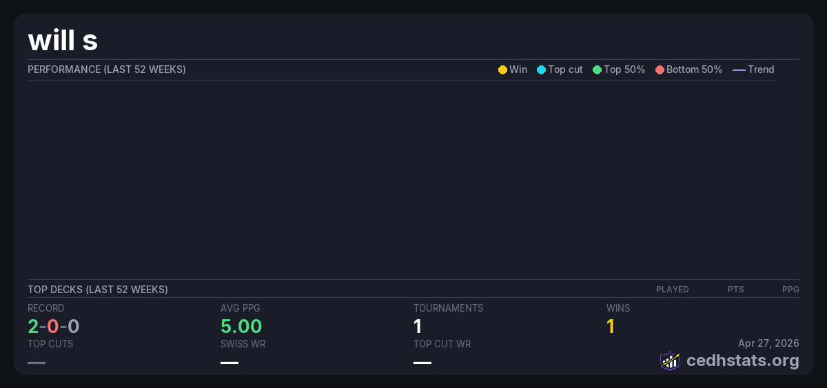 | Tournament | Deck | Result | Record | PPG | Points ? |