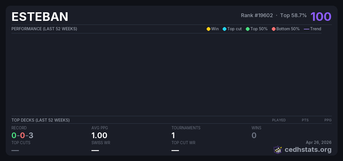 | Para Apr 29, 2025 | Invalid pairing | 6/16 | 0-0-3 | 100 |