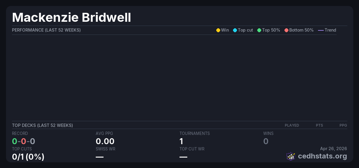 | Beyond CEDH - Dual Lands Apr 25, 2026 · 48 players | — | 44/48 | 0-0-0 | 0.00 | — |