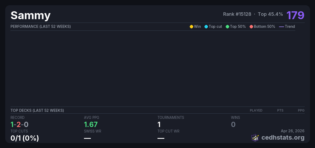 | Tournament | Deck | Result | Record | PPG | Points ? |