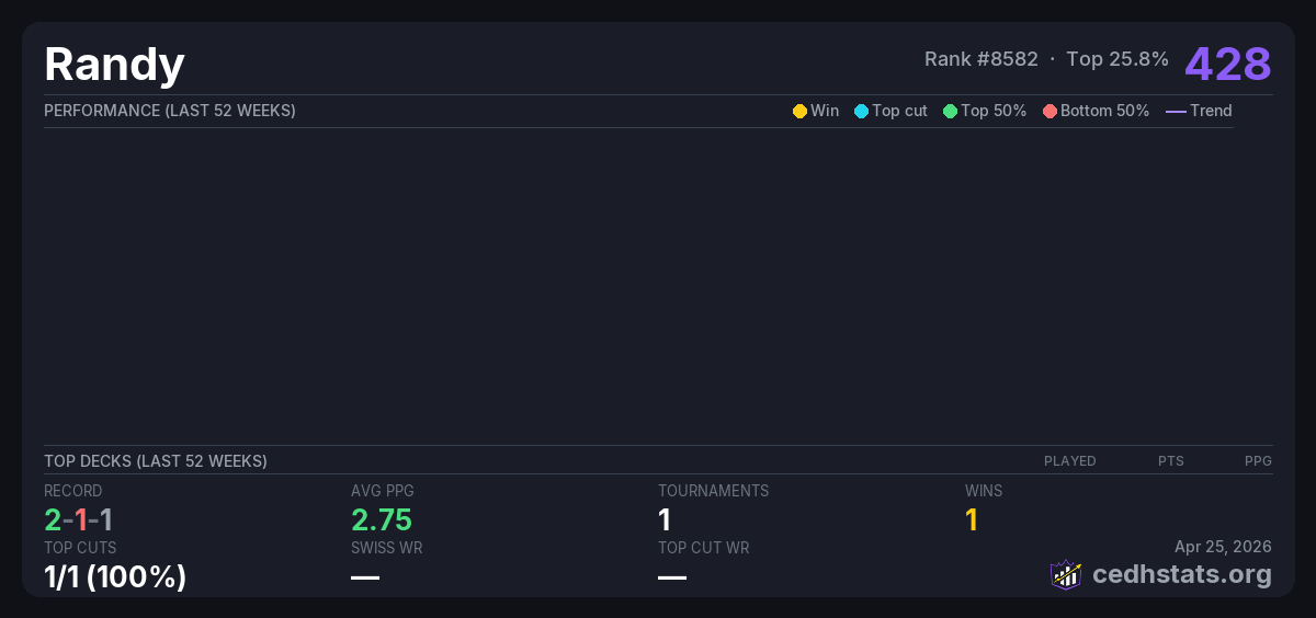 | Tournament | Deck | Result | Record | PPG | Points ? |