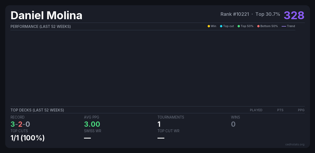 | Tournament | Deck | Result | Record | PPG | Points ? |