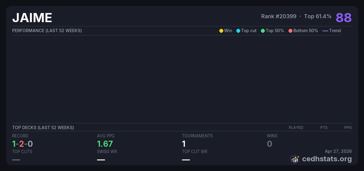 | Tournament | Deck | Result | Record | PPG | Points ? |