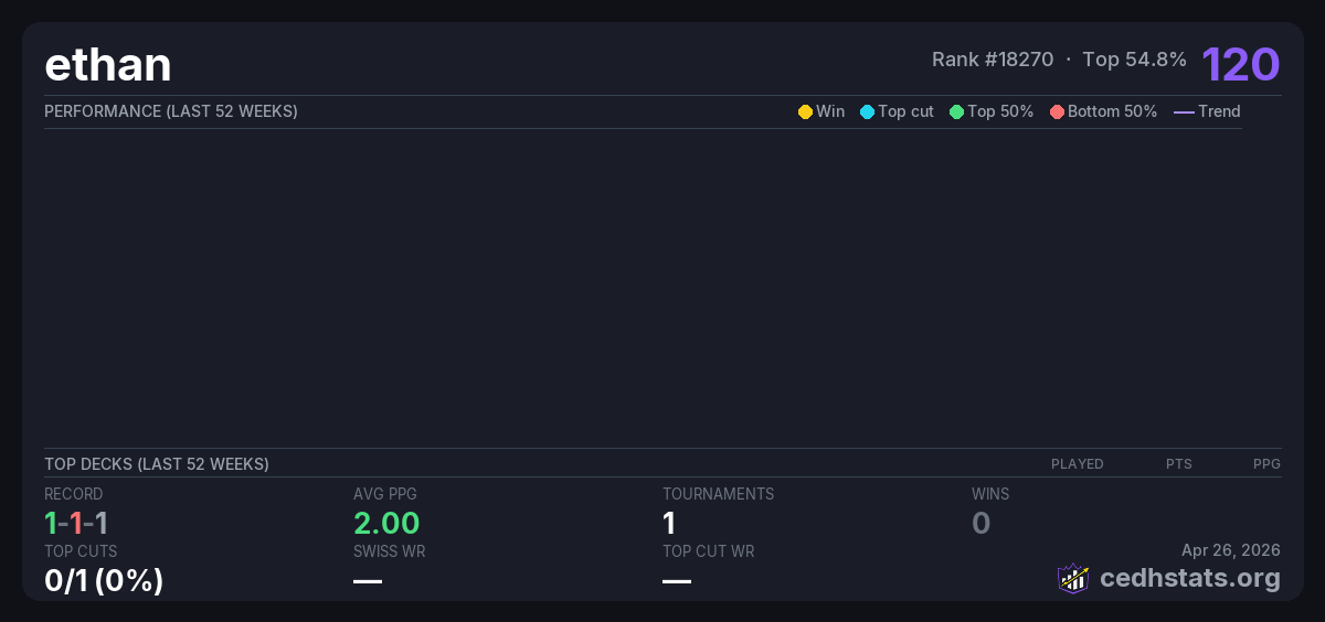 | monday cedh Aug 04, 2025 | — | 5/16 | 1-1-1 | 120 |