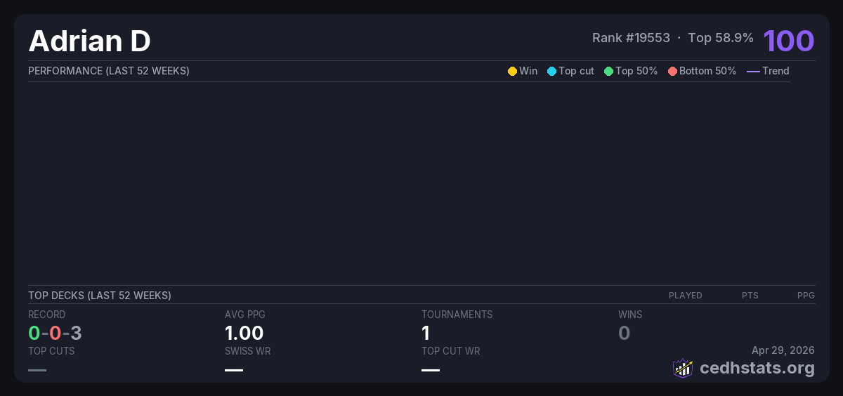 | Tournament | Deck | Result | Record | PPG | Points ? |