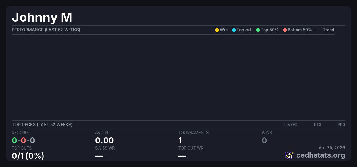 | Tournament | Deck | Result | Record | PPG | Points ? |