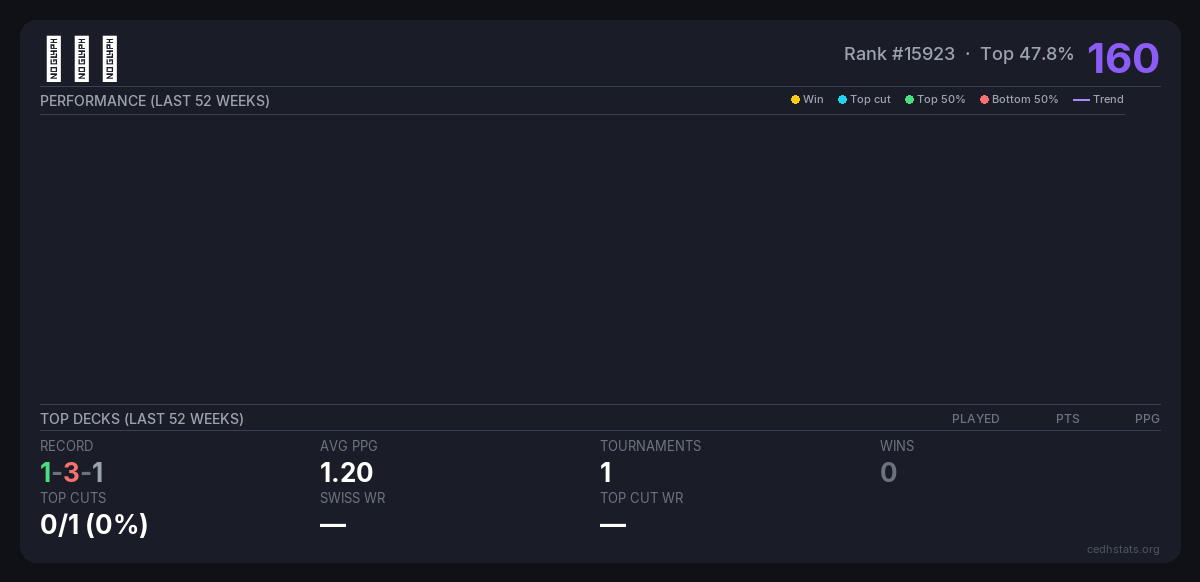 | Command Fest Shanghai 250524 May 24, 2025 · 93 players | Invalid pairing | 35/93 | 1-3-1 | 1.20 | 160 |