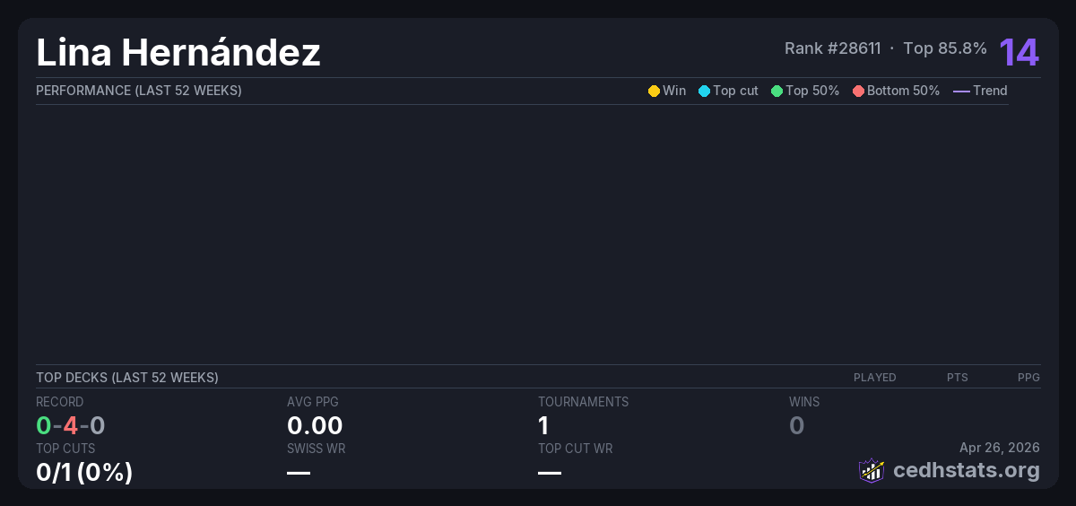 | Tournament | Deck | Result | Record | PPG | Points ? |