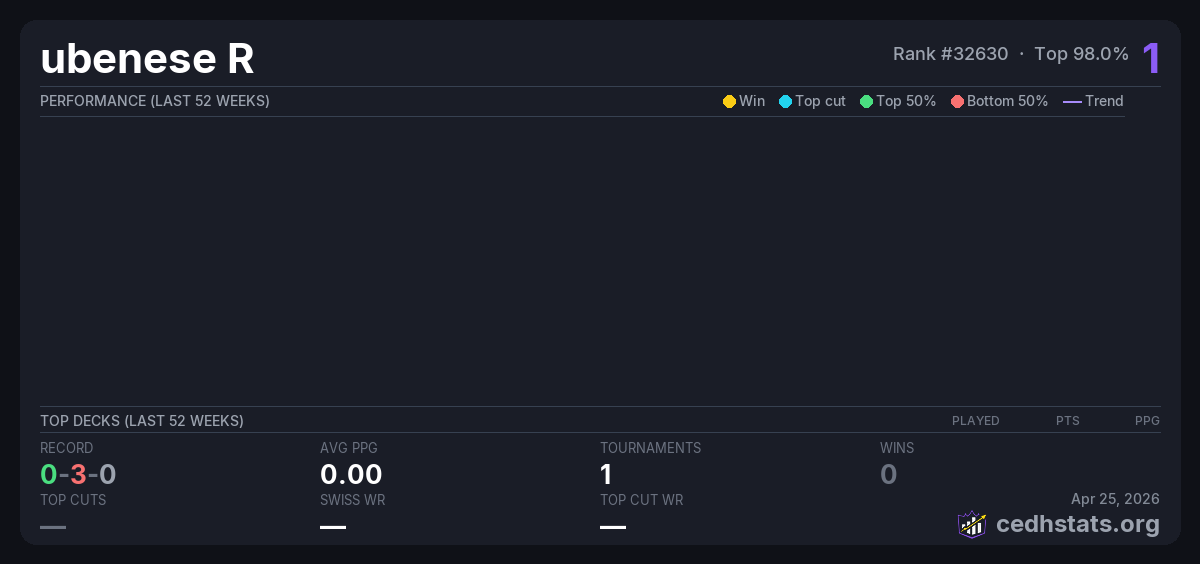 | bracket 3 tourney Dec 16, 2025 · 23 players | — | 23/23 | 0-3-0 | 0.00 | 1 |
