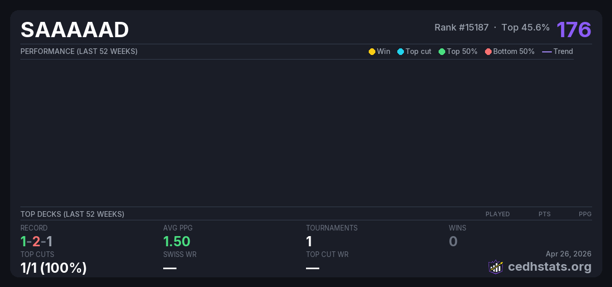 | Tournament | Deck | Result | Record | PPG | Points ? |