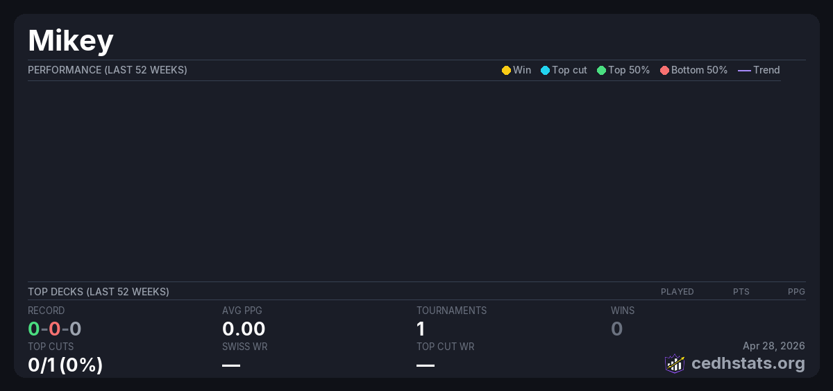 | Tournament | Deck | Result | Record | PPG | Points ? |