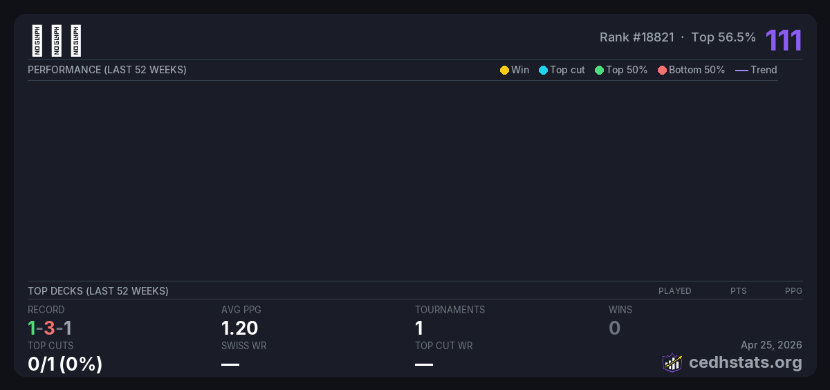 | CommandFest Beijing 2025 Aug 16, 2025 · 60 players | Invalid pairing | 27/60 | 1-3-1 | 1.20 | 111 |