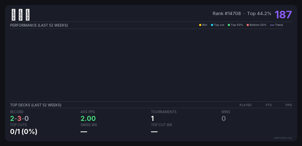 | Tournament | Deck | Result | Record | PPG | Points ? |