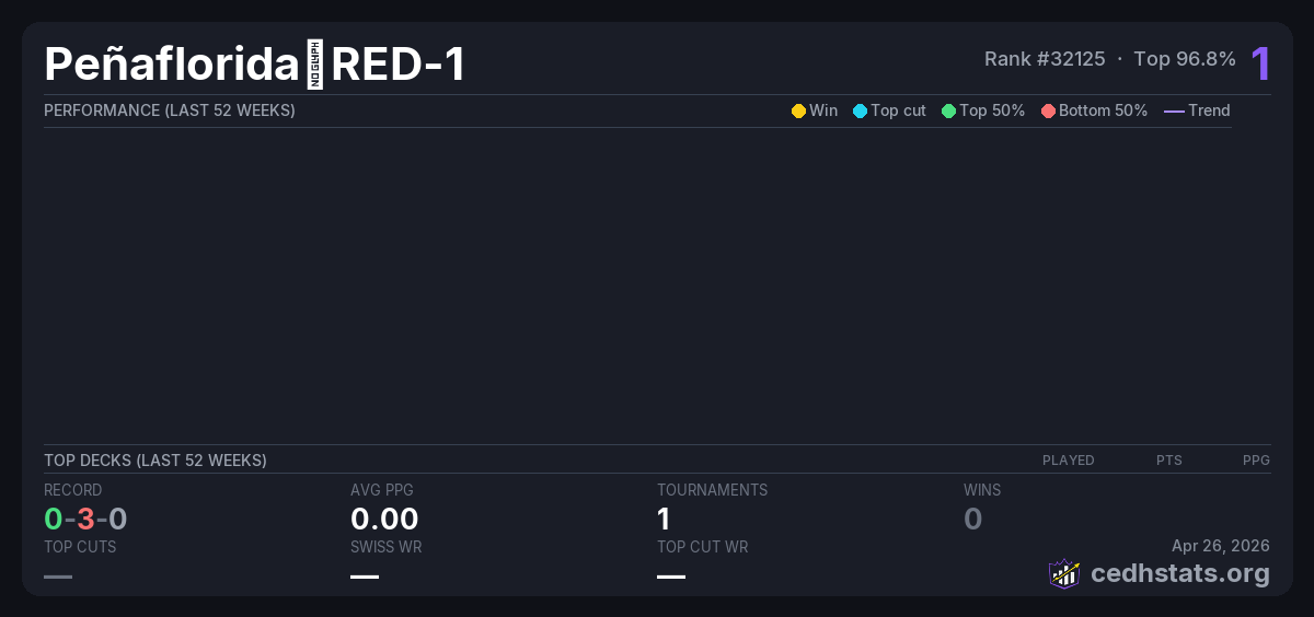| Bracket 3 Commander Sep 28, 2025 · 16 players | — | 16/16 | 0-3-0 | 0.00 | 1 |