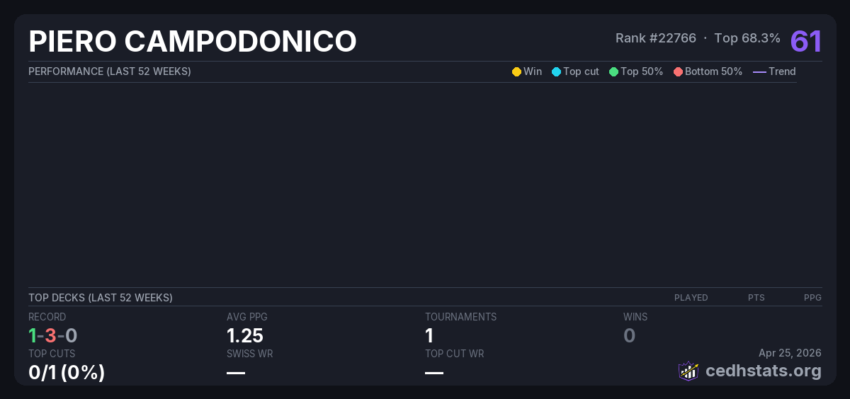 | CEDH HAMMER NOCTURNO Oct 18, 2025 | Invalid pairing | 12/22 | 1-3-0 | 61 |