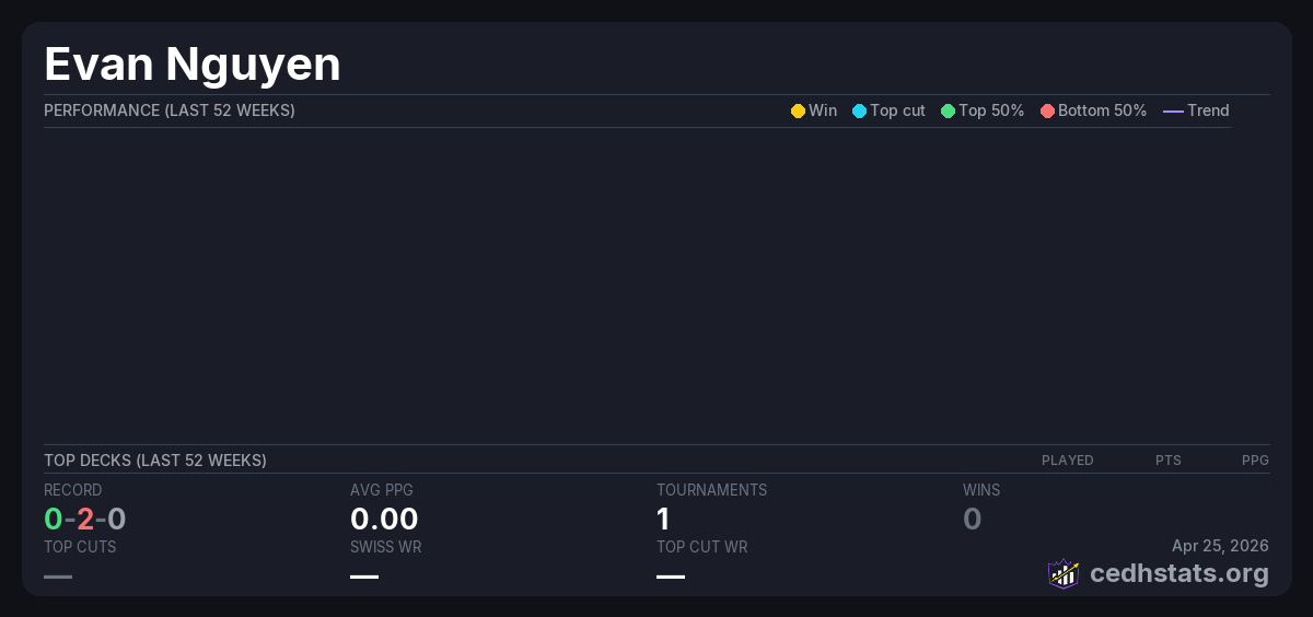 | Tournament | Deck | Result | Record | PPG | Points ? |