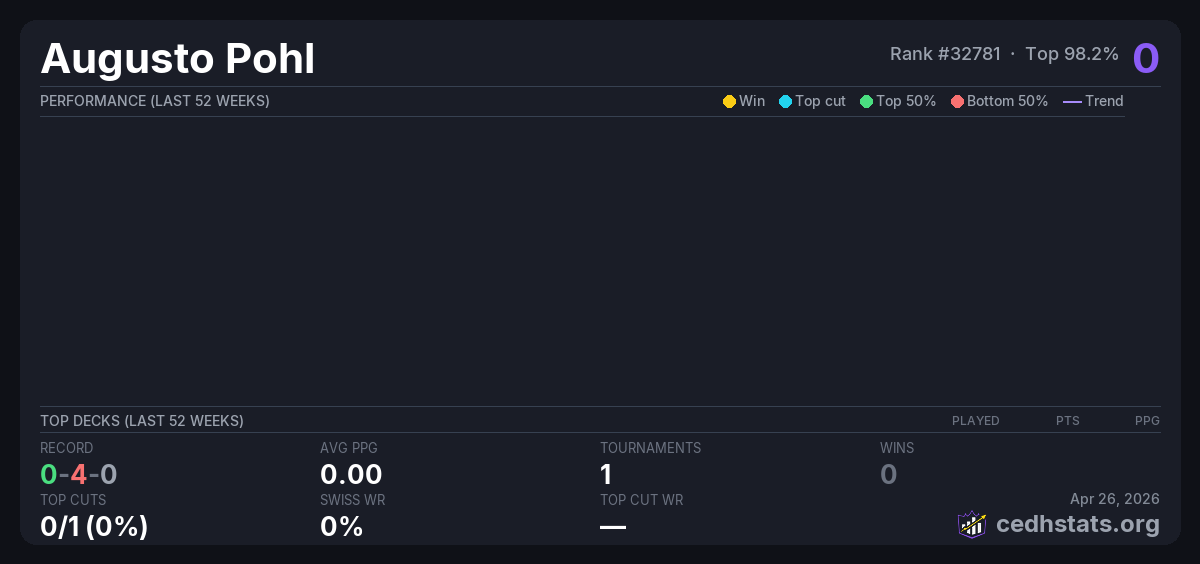 | Commander 500 - 2K - 25-04-2026 Apr 25, 2026 | — | 24/24 | 0-4-0 | 0 |