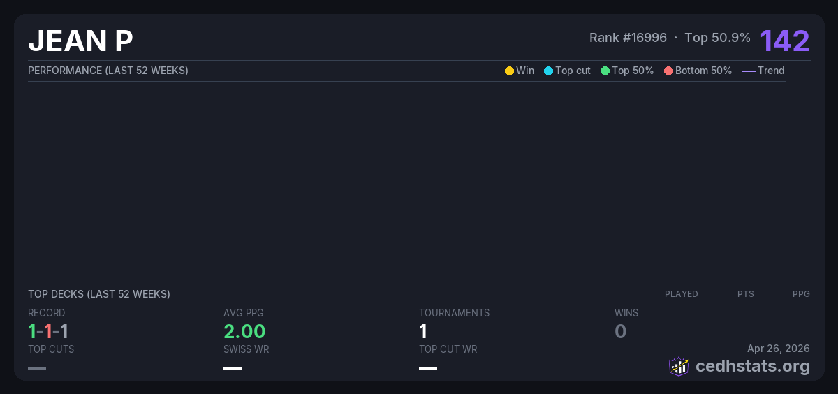 | Tournament | Deck | Result | Record | PPG | Points ? |