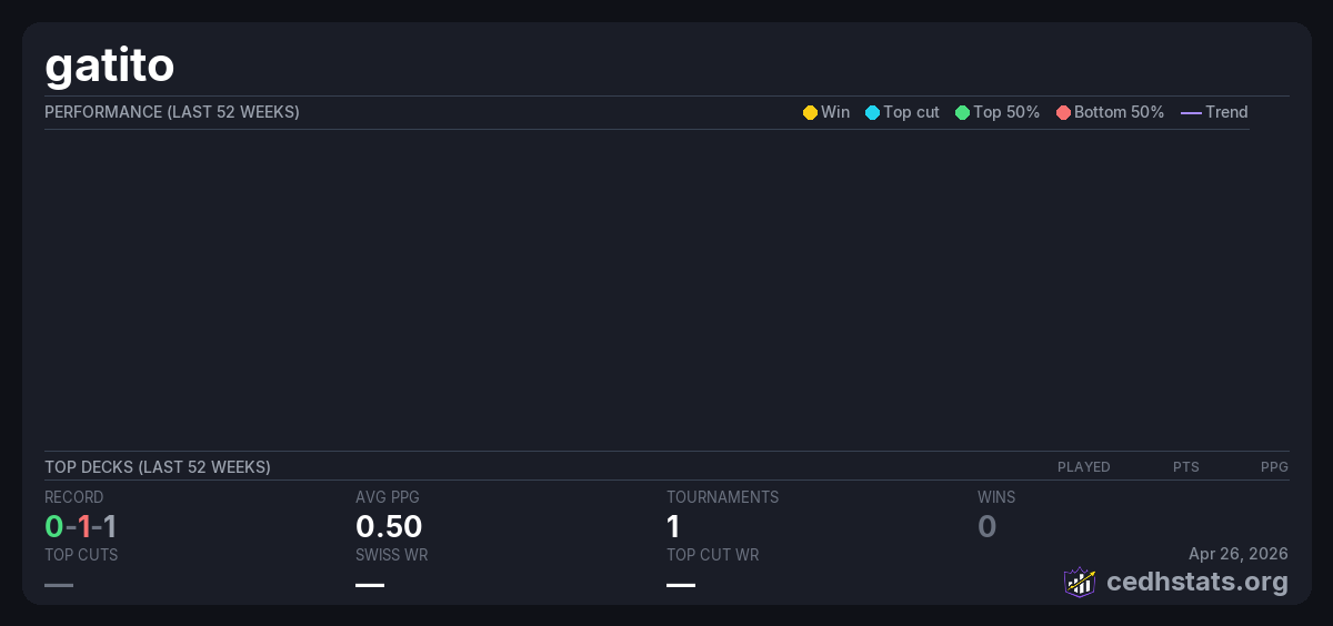 | Tournament | Deck | Result | Record | PPG | Points ? |