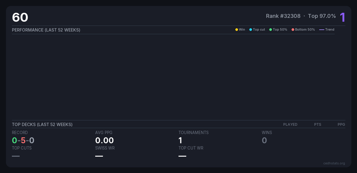 | Tournament | Deck | Result | Record | PPG | Points ? |