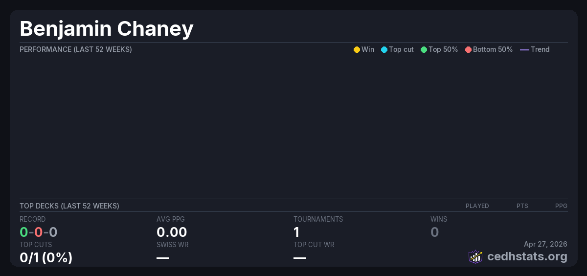 | Twisted Power - Midwest Gaming Classic TimeTwister Tournament Apr 25, 2026 · 172 players | — | 163/172 | 0-0-0 | 0.00 | — |