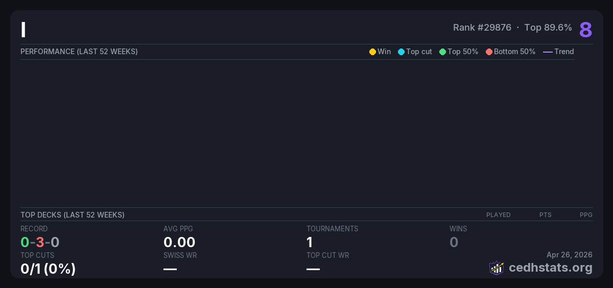| Tournament | Deck | Result | Record | PPG | Points ? |