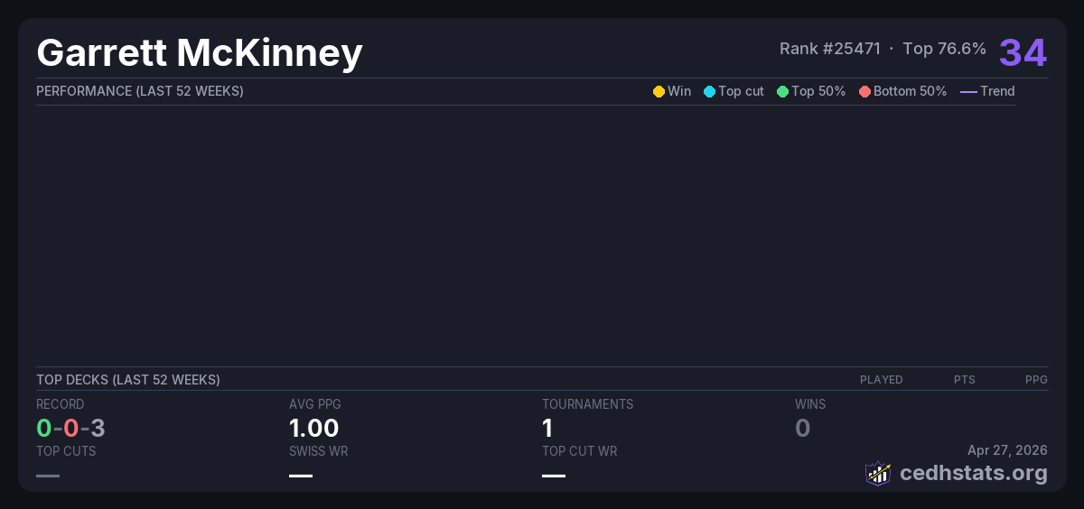 | Casual Commander Feb 26, 2026 | 13/19 | 0-0-3 | 34 | |