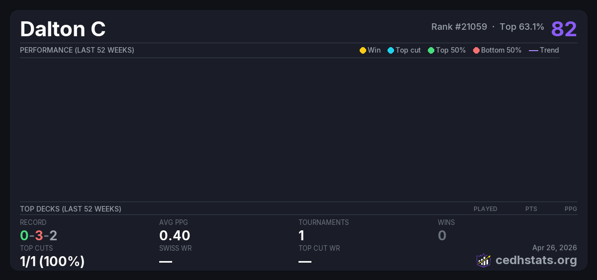 | Tournament | Deck | Result | Record | PPG | Points ? |