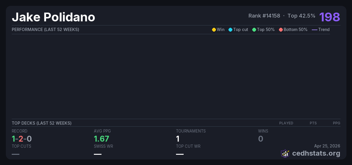 | Tournament | Deck | Result | Record | PPG | Points ? |