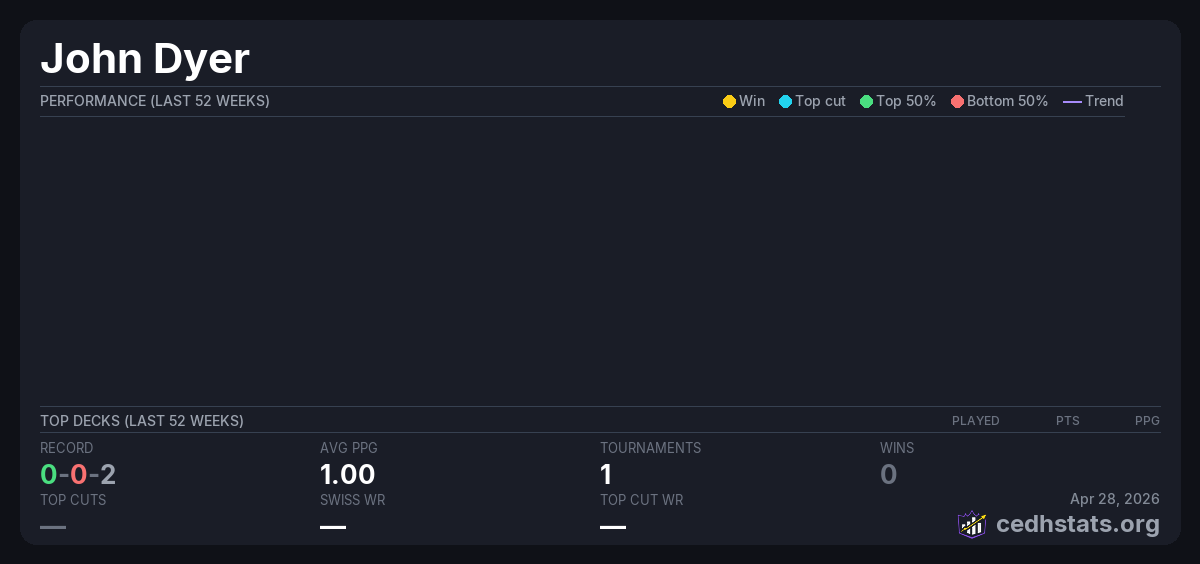 | Tournament | Deck | Result | Record | PPG | Points ? |