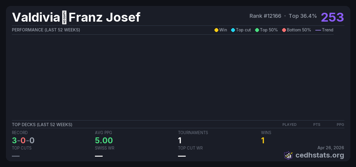 | Bracket 3 Commander Sep 21, 2025 | — | 1/20 | 3-0-0 | 253 |