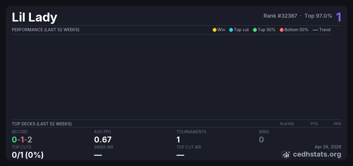 | Tournament | Deck | Result | Record | PPG | Points ? |