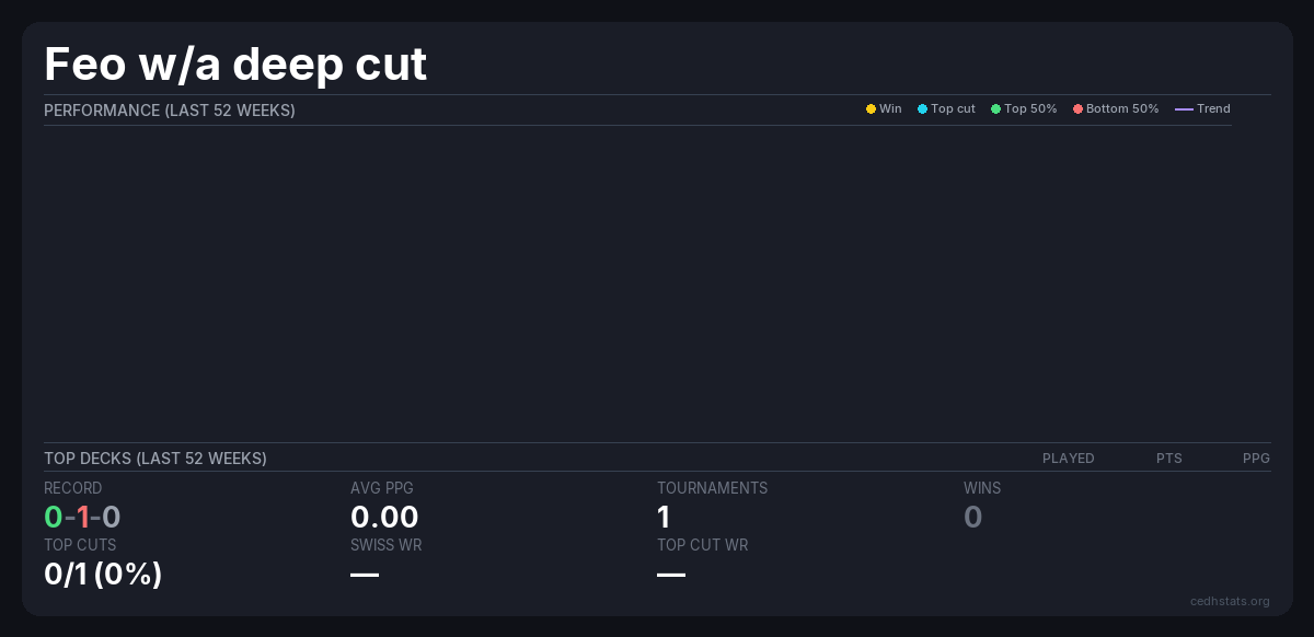 | Tournament | Deck | Result | Record | PPG | Points ? |