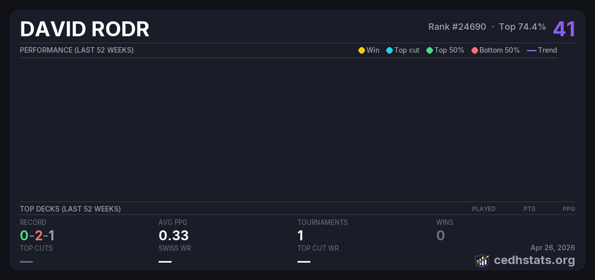 | parara Jun 24, 2025 · 16 players | Invalid pairing | 10/16 | 0-2-1 | 0.33 | 41 |